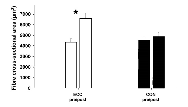 Las ganancias obtenidas después del entrenamiento con ejercicios ECC son asociadas con adaptaciones del sistema neuromuscular, incluyendo una importante hipertrofia muscular en la proporción y el área transversal de las fibras musculares tipo II, y posiblemente un alteración de la arquitectura muscular y mecánica (Imagen 5). Estos cambios pueden estar vinculados a un aumento del contenido y activación de las células satélite (Imagen 6). También puede deberse a una expresión aumentada de la proteína Factor de crecimiento de insulina (IFG-1). Se puede relacionar también con adaptaciones nerviosas que involucran mecanismos relacionados con mayor activación muscular.